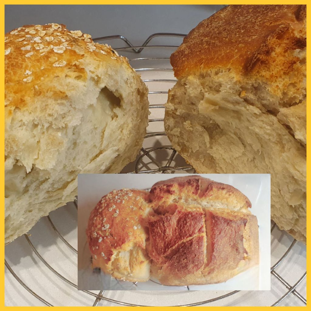 Mit dem Ergebnis waren wir sehr zufrieden,  beide Brote waren sehr lecker. Ich selbst bevorzuge das „Übernachtbrot“: der Sauerteig hat einen etwas kräftigeren Geschmack und die Struktur des Teiges ist feiner. Außerdem ist ein Brot, welches länger gärt, bekömmlicher – das Gluten im Mehl hat länger Zeit, umgebaut zu werden.
