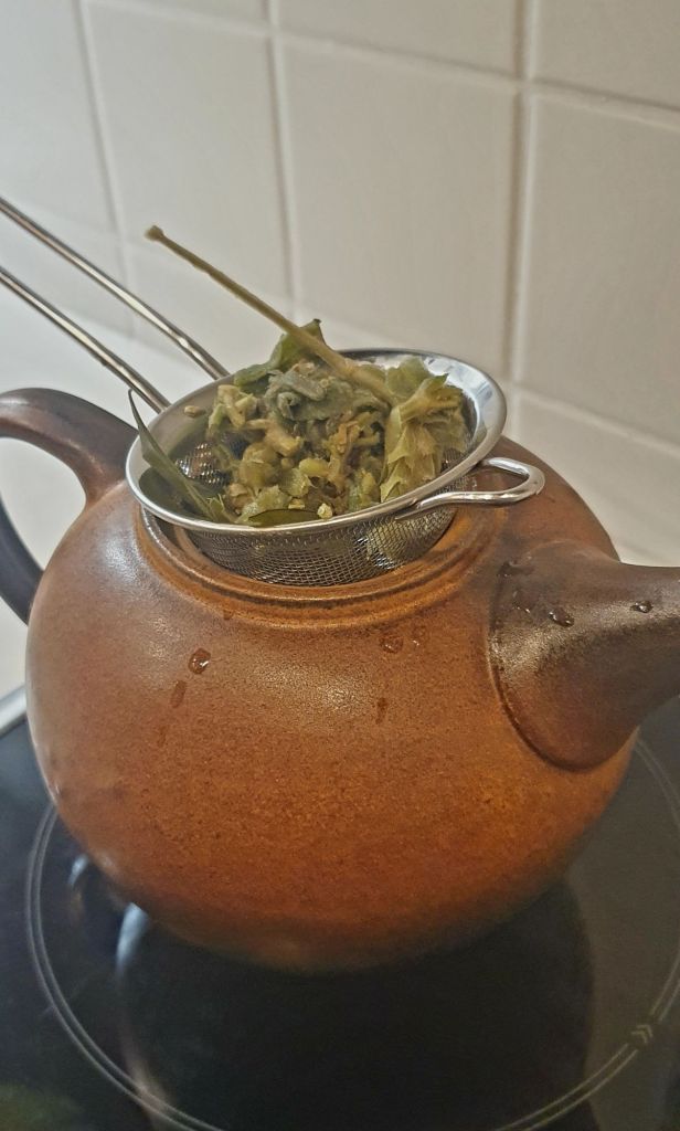 Um mich einzustimmen,  kochte ich mir einen griechischen Bergtee mit ein paar Oliven- und Orangenblättern.