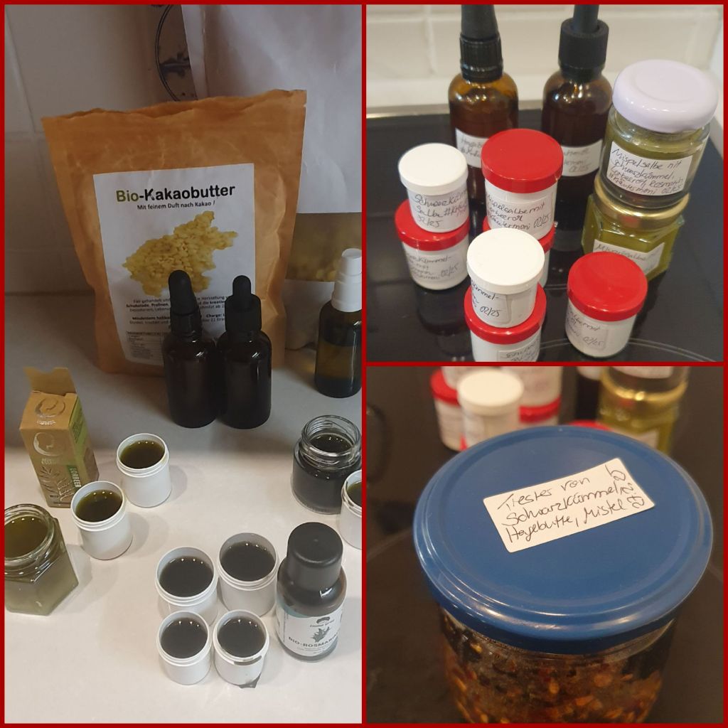Die Salben sind von mir entwickelt worden, weil einige Bekannte und ich Mittel gegen Hauterkrankungen und Arthritis/Rheuma benötigen. Ich werde über die Wirkung berichten.