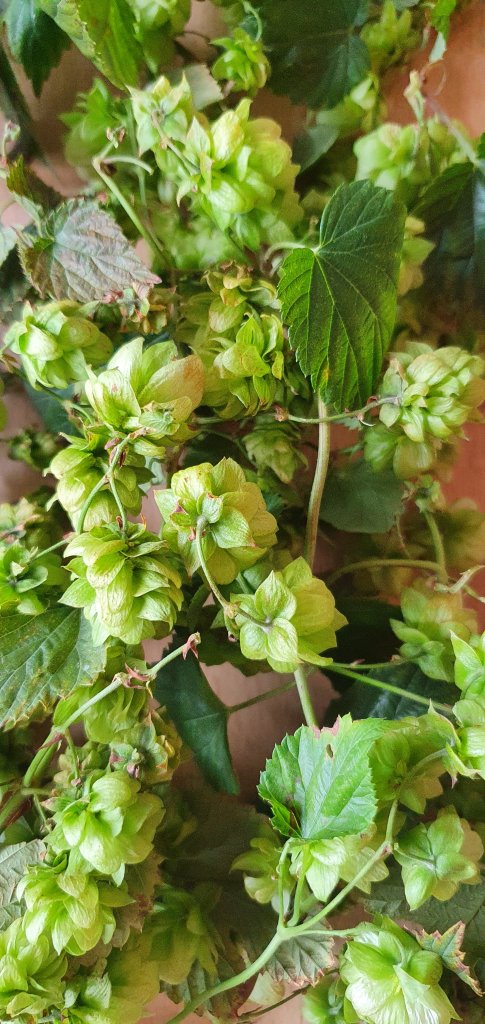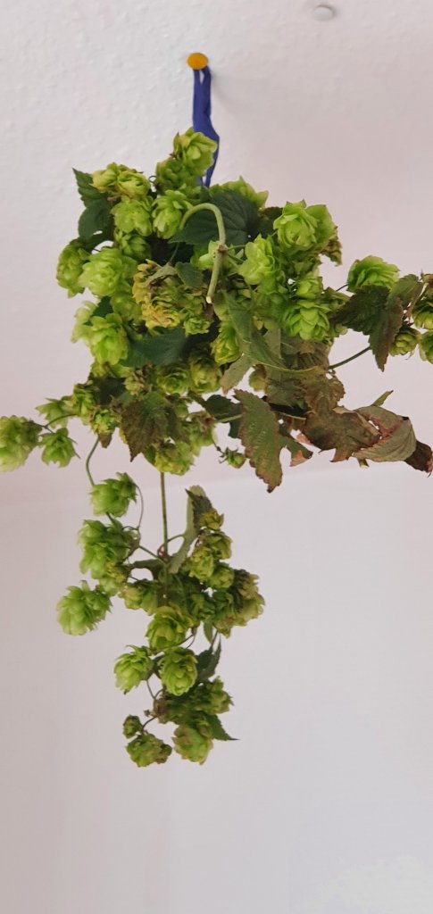 Hopfen trocknen für Tee … Bei mir in der Küche sieht das sehr dekorativ aus.