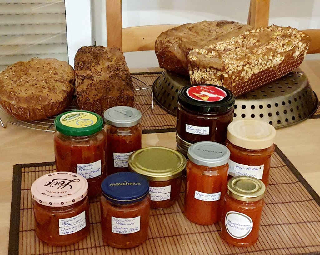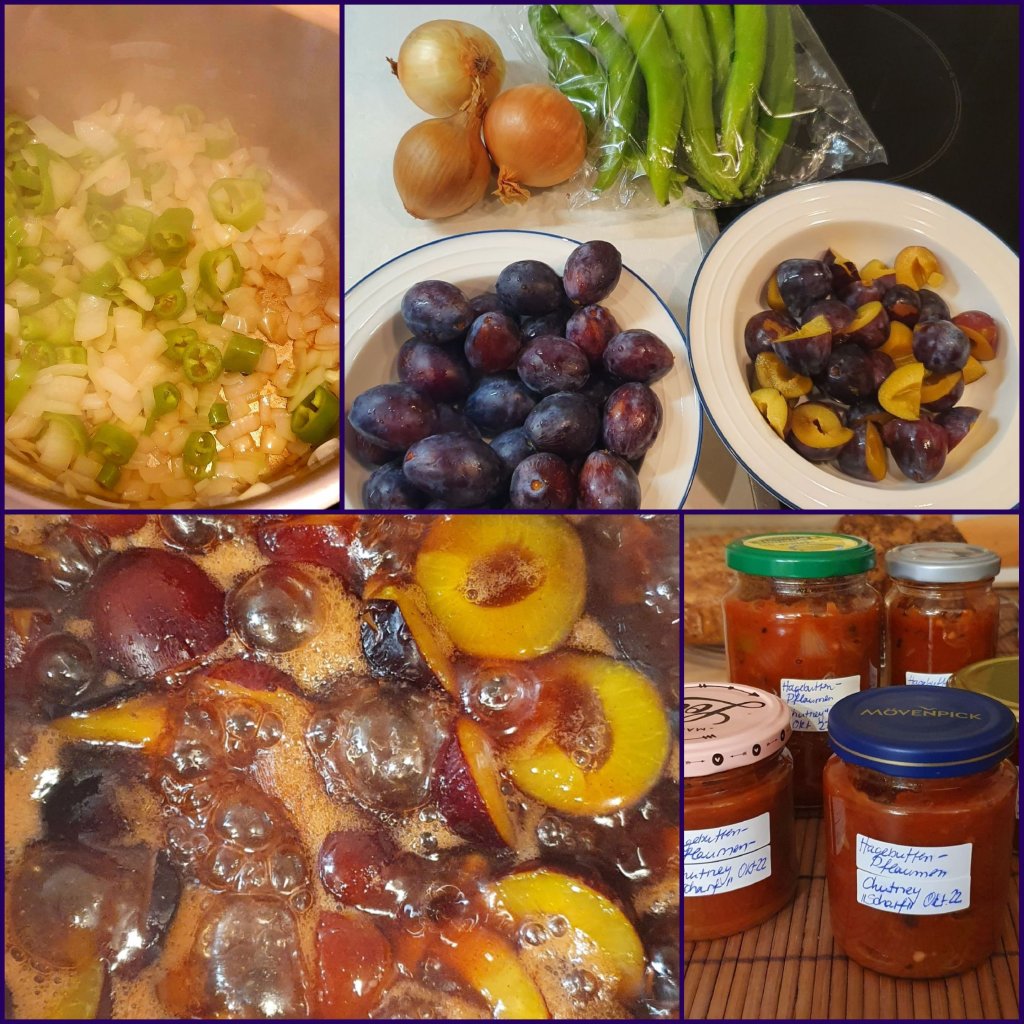 Irgendwann stellte ich erschrocken fest, wie viel Zeit inzwischen vergangen ist. Ich entschloss mich dazu, die Arbeit zuende zu bringen und jeden Arbeitsschritt zu genießen – auch das Aufräumen. Ich räume das meiste direkt im Anschluss auf und zwischendurch, wenn es passt. Für die Marmeladen und das Chutney nutzte ich das gleiche Geschirr, das dann halt gespült wird. Überhaupt … Hygiene ist beim Einmachen besonders wichtig. Die Ware soll schließlich haltbar sein.