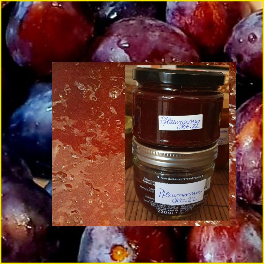 Aus den Zwetschgen wird Pflaumenmus. Dazu wird das kleingeschnittene Obst mit etwas Wasser und Gelierzucker so lange geköchelt, bis ein Mus entstanden ist.