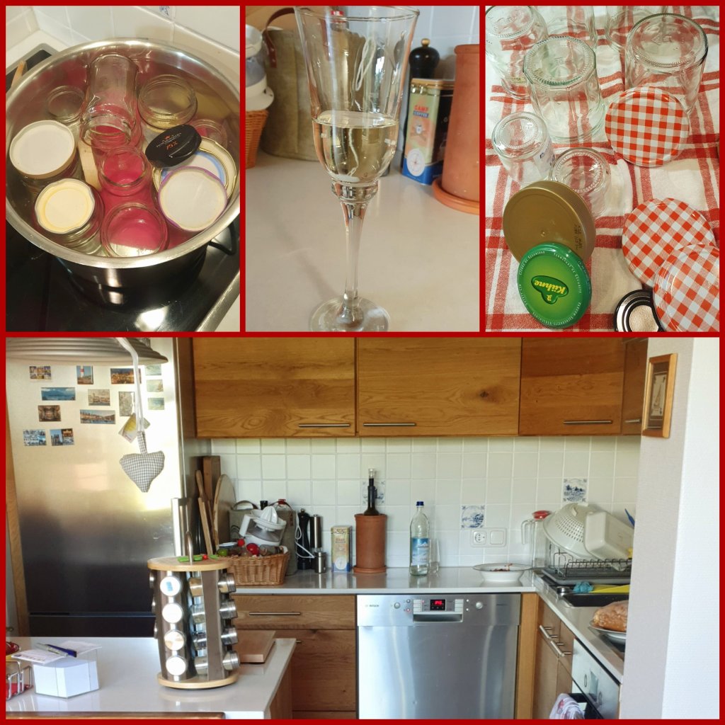 Die sauberen Gläser werden ausgekocht, die Flächen „entbabbt“, das Geschirr gespült und der Sekt sorgt für die innere Desinfektion.