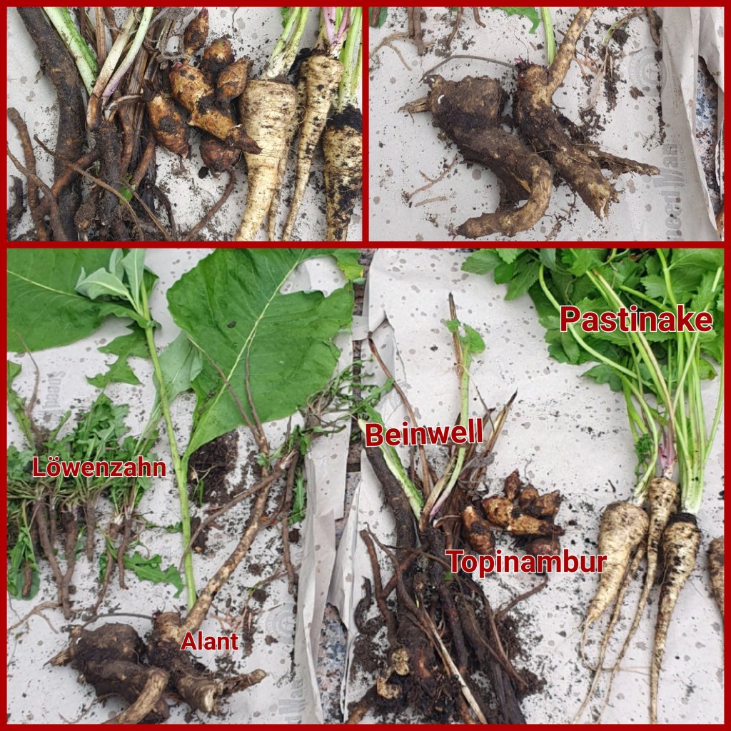 Natürlich gibt es noch andere Knollen und Wurzeln, die in unseren Breitengraden wachsen und die man kaufen kann. Dazu zählen Radieschen, Radi, Meerrettich, Petersilienwurzeln, Rote Beete, Nelkenwurz …