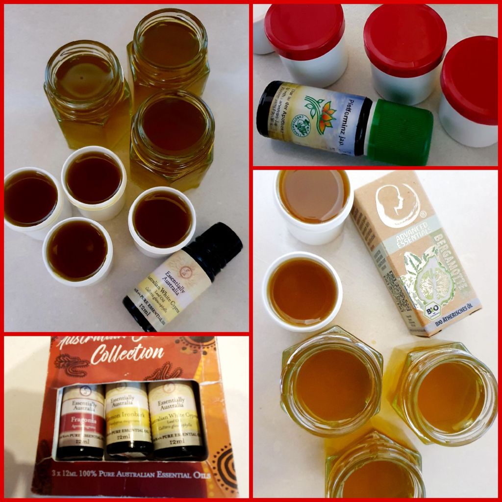 Die drei ätherischen Öle waren ein Mitbringsel meines Sohnes aus Australien. Er weiß genau, was seiner Mutter gefällt. 😍