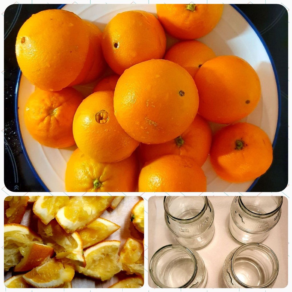 Mein erster Essig! Ich nutze unsere „Orangen-Abfälle“, da wir die Bio-Früchte direkt aus Spanien beziehen für unseren täglichen Saft. Vom Obst kann man fast alles verwerten: Schale, Frucht, Gehäuse. Die Früchte müssen ungespritzt und gewaschen sein.