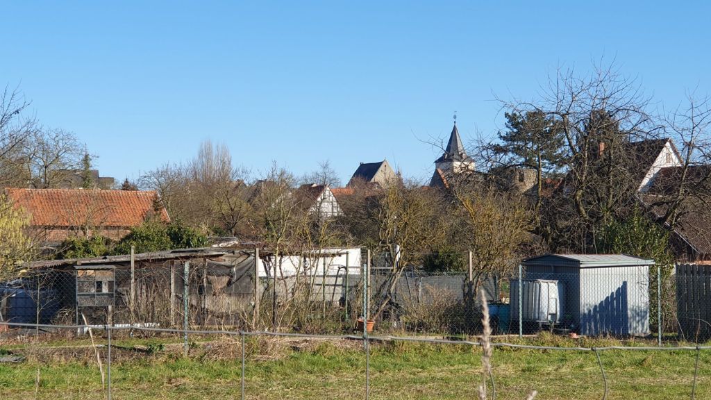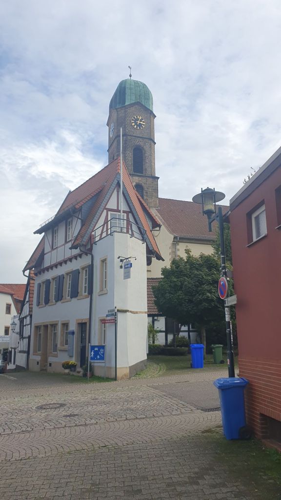Kirche von GrünstadtGugg aus dem Hotelfenster in Grünstadt-Asselheim.