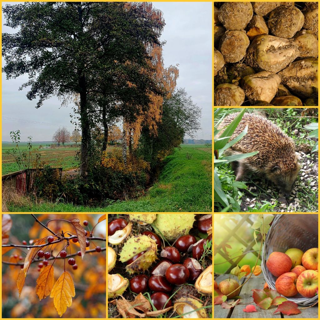 Die Rüben am Rand vom Feld bringen Zucker für wenig Geld. Im Keller lagern Äpfel fein, sie werden bald im Kuchen sein.