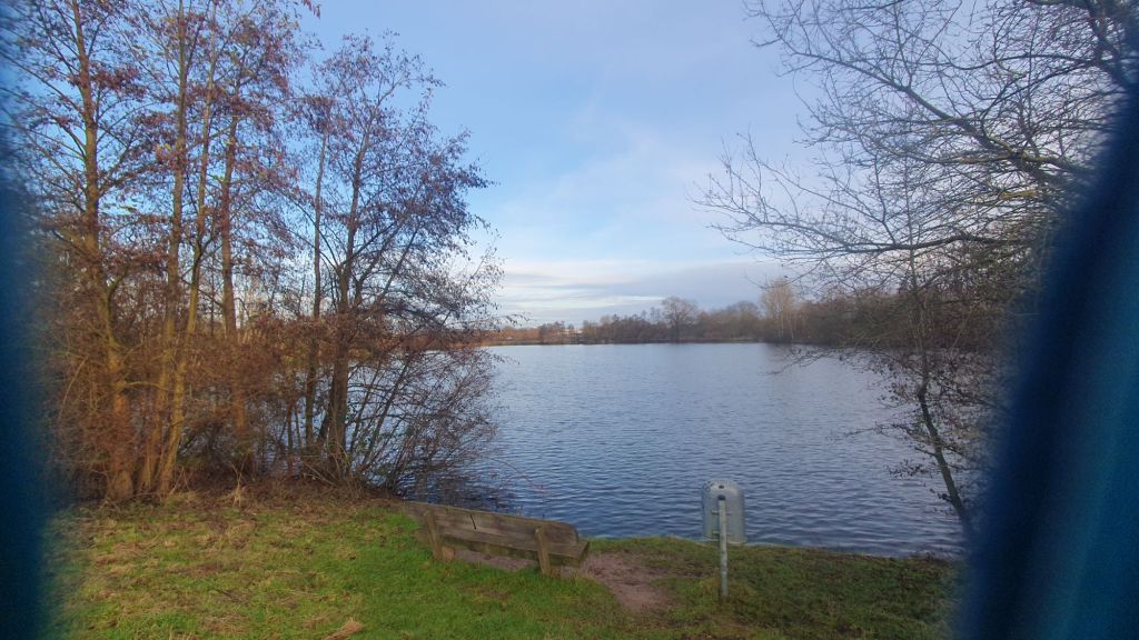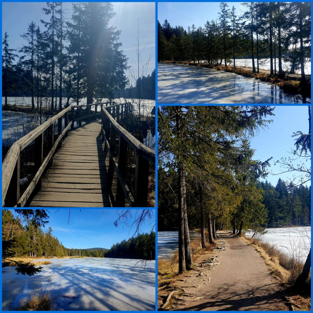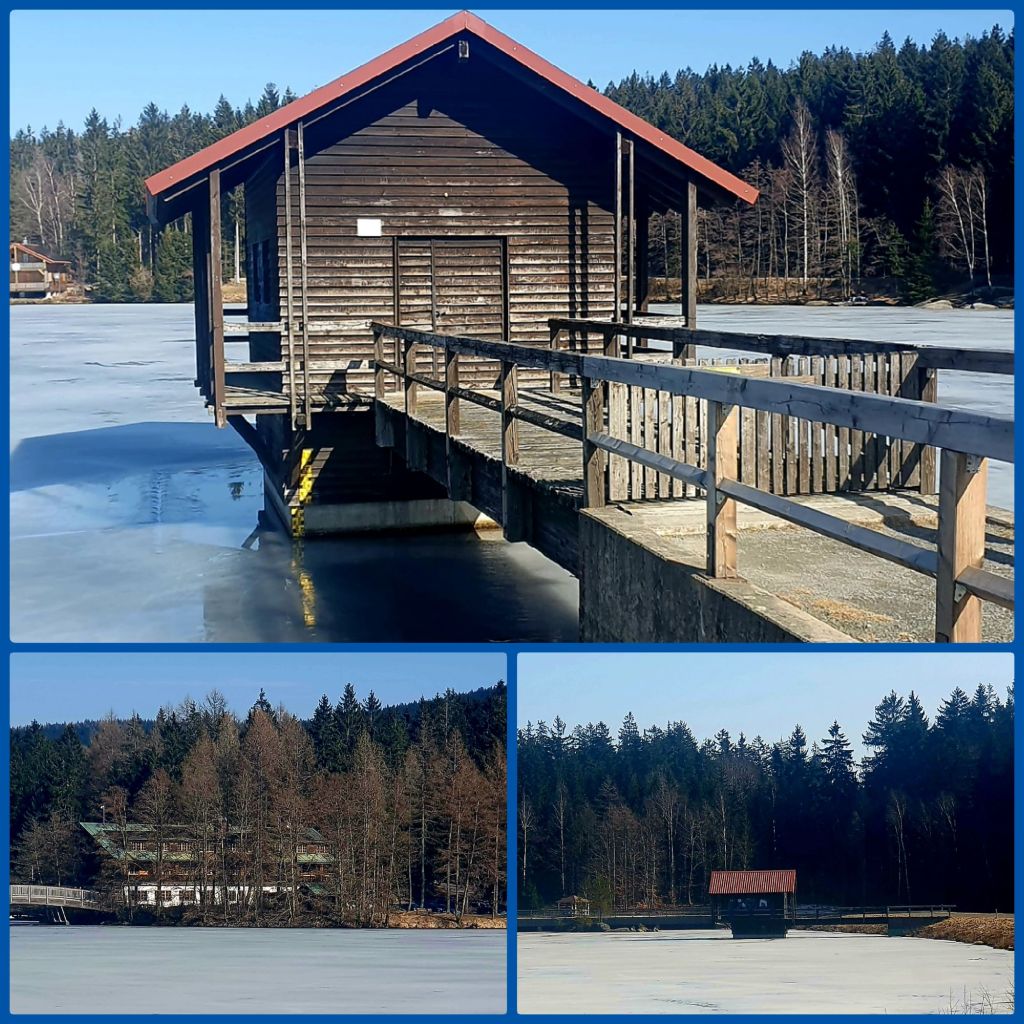 Im März bei 14°C und Sonnenschein ist der See noch gefroren. Ein Rundweg führt um den See.