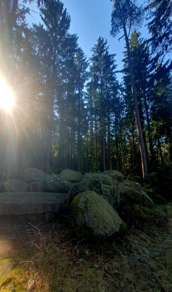 Die Gesteinsblöcke, die überall in den Wäldern zu finden sind, regen zu allerlei Sagen an, z.B. diese: