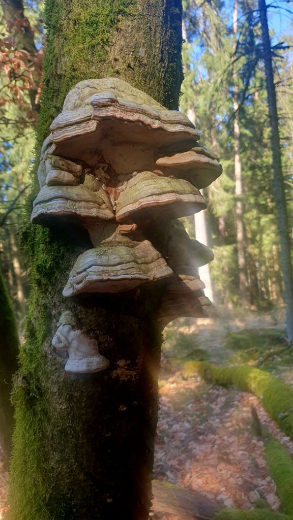 Das Fichtelgebirge ist für seine Ureinwohner bekannt. Hier lebt die letzte natürliche Population von Auerhühnern Bayerns außerhalb der Alpen. (Bilder: Pixabay)In den Moorgebieten wachsen Pflanzen, die gut mit saurem Boden klarkommen: Binsen, Preiselbeeren, Heidelbeeren, Fichten uvm.Die Schwarzerle (Alnus glutinosa) gehört zur Familie der Birkengewächse (Betulaceae) und ist eine Pionierpflanze, die höchstens um die 120 Jahre alt werden kann. Sie ist anderen Laubbäumen auf ausgesprochen nassen, grundwasserbeeinflussten oder zeitweise überschwemmten oder sumpfigen Standorten überlegen und bildet dort auch Reinbestände, wie im Spreewald südlich von Berlin. Im Volksglauben wird sie mit dem Teufel und Hexerei in Verbindung gebracht, da sie an unwirtlichen Standorten gedeiht. Erlenholz ist äußerst beständig im Wasser. Es wurde in der Jungsteinzeit für Pfahlbauten verwendet. Auch Venedig wurde auf Eichen- und Erlenholz errichtet. Heilwirkung: Die Schwarzerlenknospen zeigen eine entzündungshemmende Wirkung. Sie lindern Infektionen im Atem- und Verdauungstrakt und helfen bei Allergien mit Ekzemen. Das Knospen stärken das Immunsystem und beugen so beispielsweise grippalen Infekten vor.Baumschwämme sind Pilze, die sich von Holz ernähren. Sie schädigen zwar gesunde Bäume, sorgen aber auch für den Abbau von toten Bäumen. Ihr Geflecht befindet sich im Innern der Stämme. Sichtbar sind lediglich die Fruchtkörper der Pilze. Dieser Baum ist eine abgestorbene Rotbuche.
