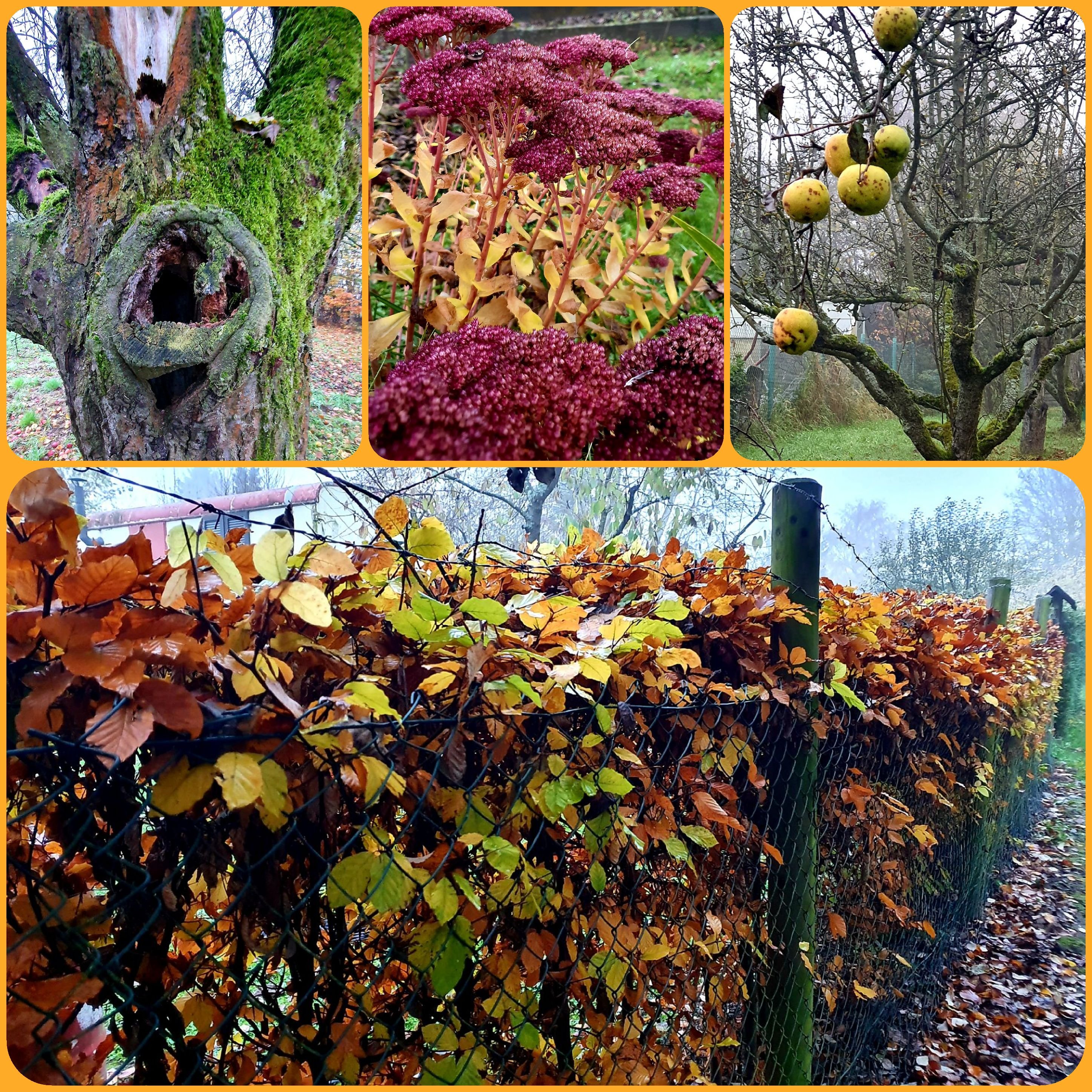 Wenn ich dann unterwegs bin, beruhigt mich die Natur. Sie hüllt mich ein und führt mich auf mich zurück. Der Hund schnüffelt und ich atme tief und beobachte die vielen Einzelheiten, die sich mir offenbaren. Es ist kalt, keine Sonne in Sicht. Und trotzdem, es ist gut, wie es ist. Ich lasse die Bilder auf mich wirken, die verblassenden Farben, das Verwelken und letztendlich das Sterben. Es fühlt sich richtig an, denn ich weiß ja, dass das Sterben auf zukünftiges Leben weist.