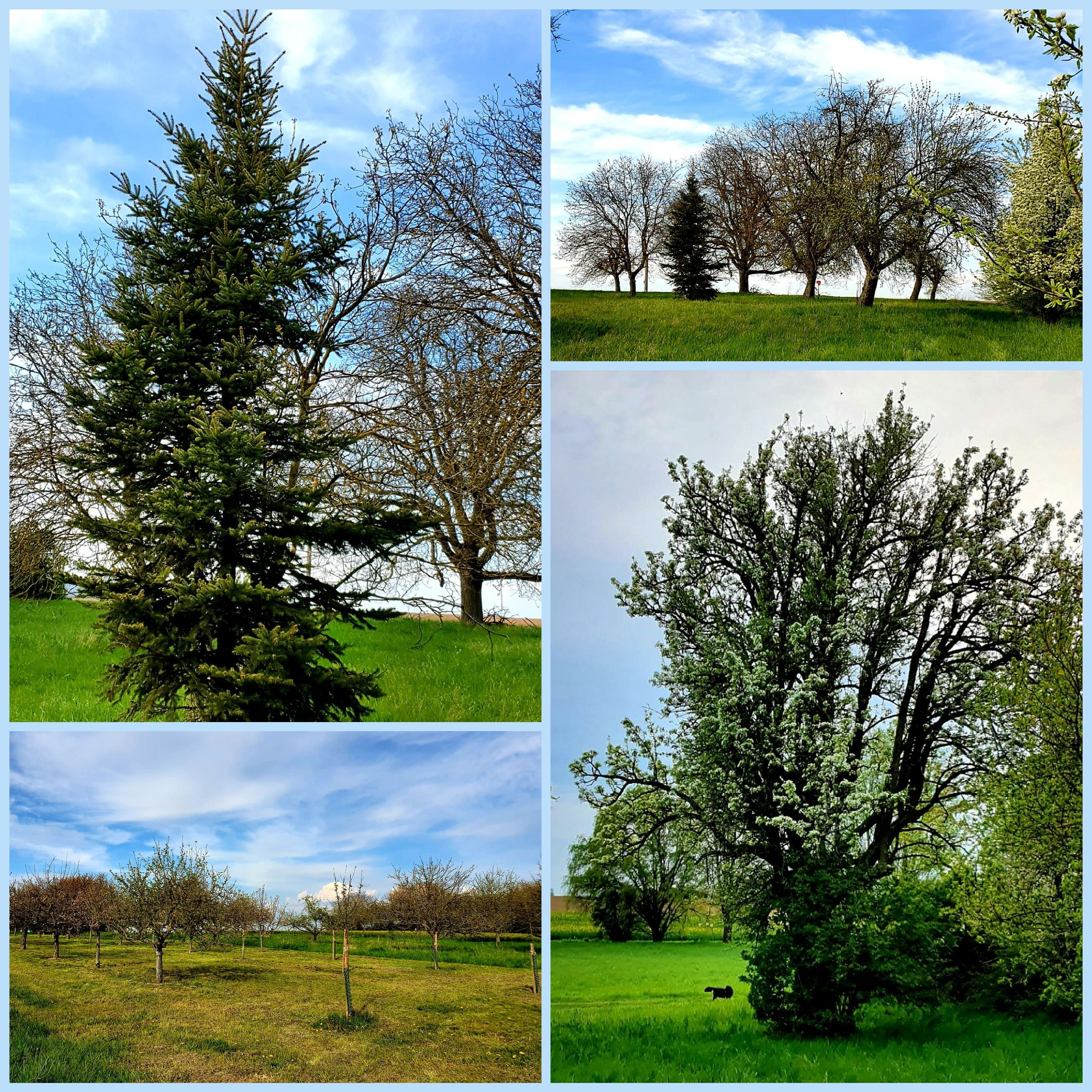 Typische Landschaftsbilder: Windmühlen und Apfelbäume.