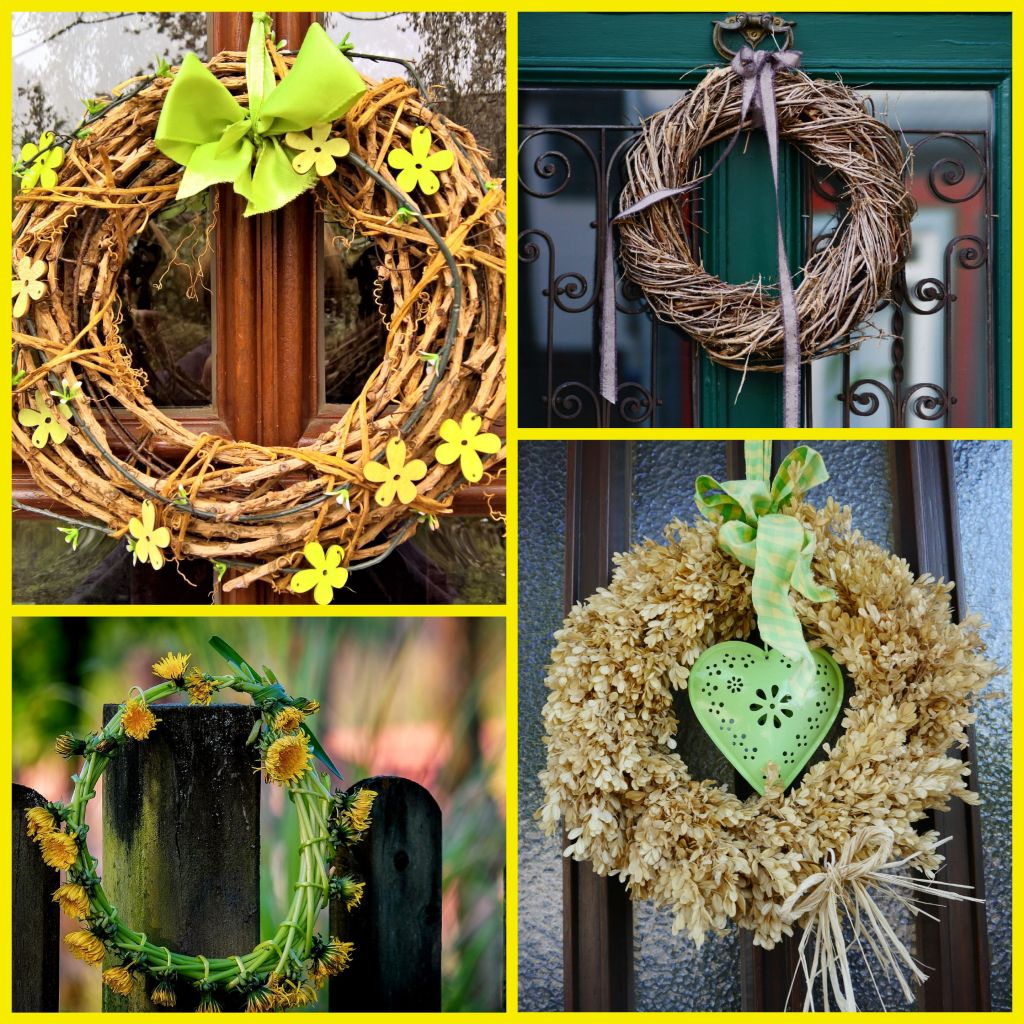 Wie wird’s gemacht? Die Zweige im Eimer rund auslegen und mit Draht fixieren. Fertig ist der Kranz! Mit Moosen, Efeu oder anderem beliebigem Material dekorieren. Mit Paketband aufhängen.