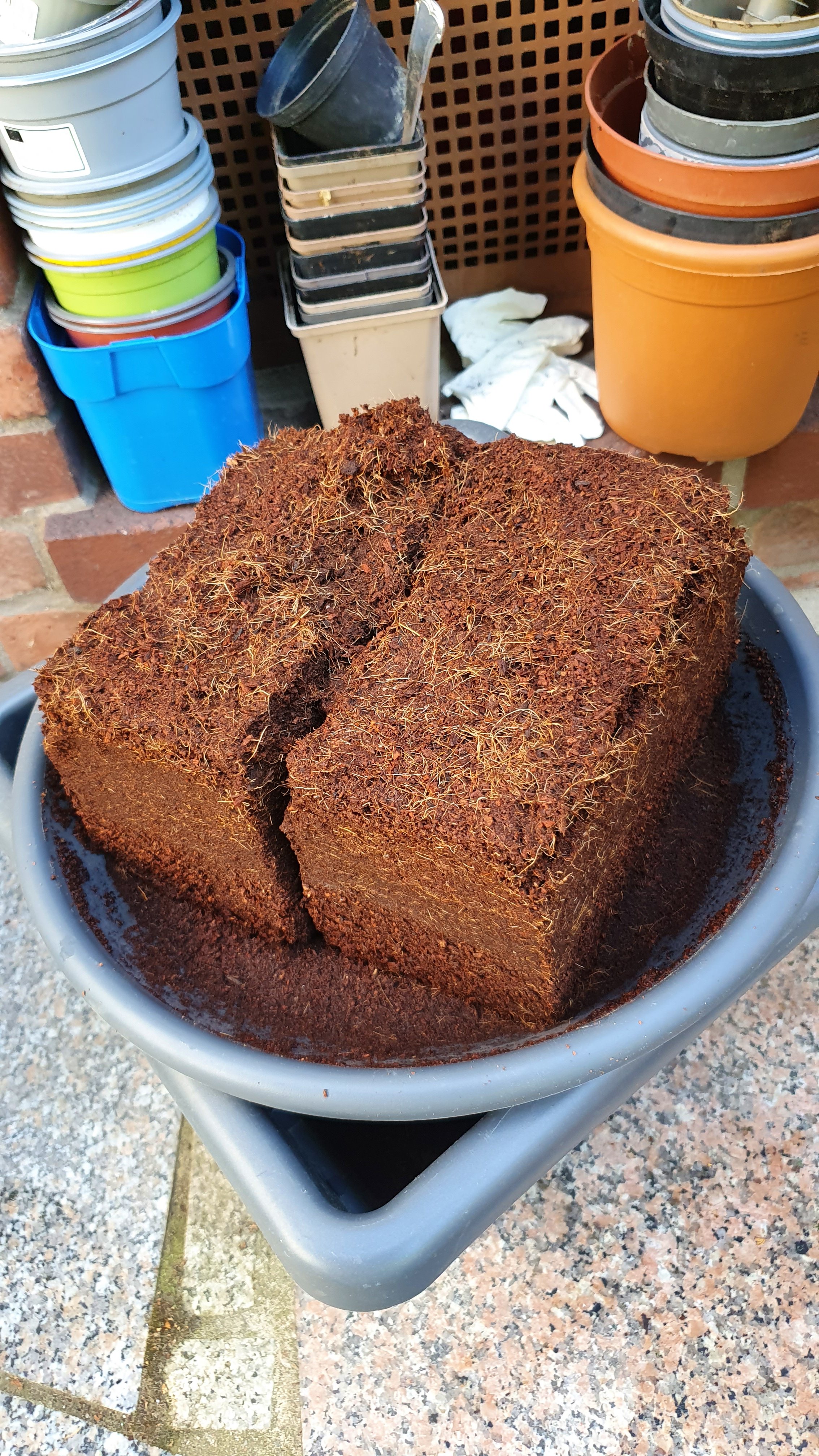 Die oberste Schicht in den Bottichen besteht aus Kokosfasern.
