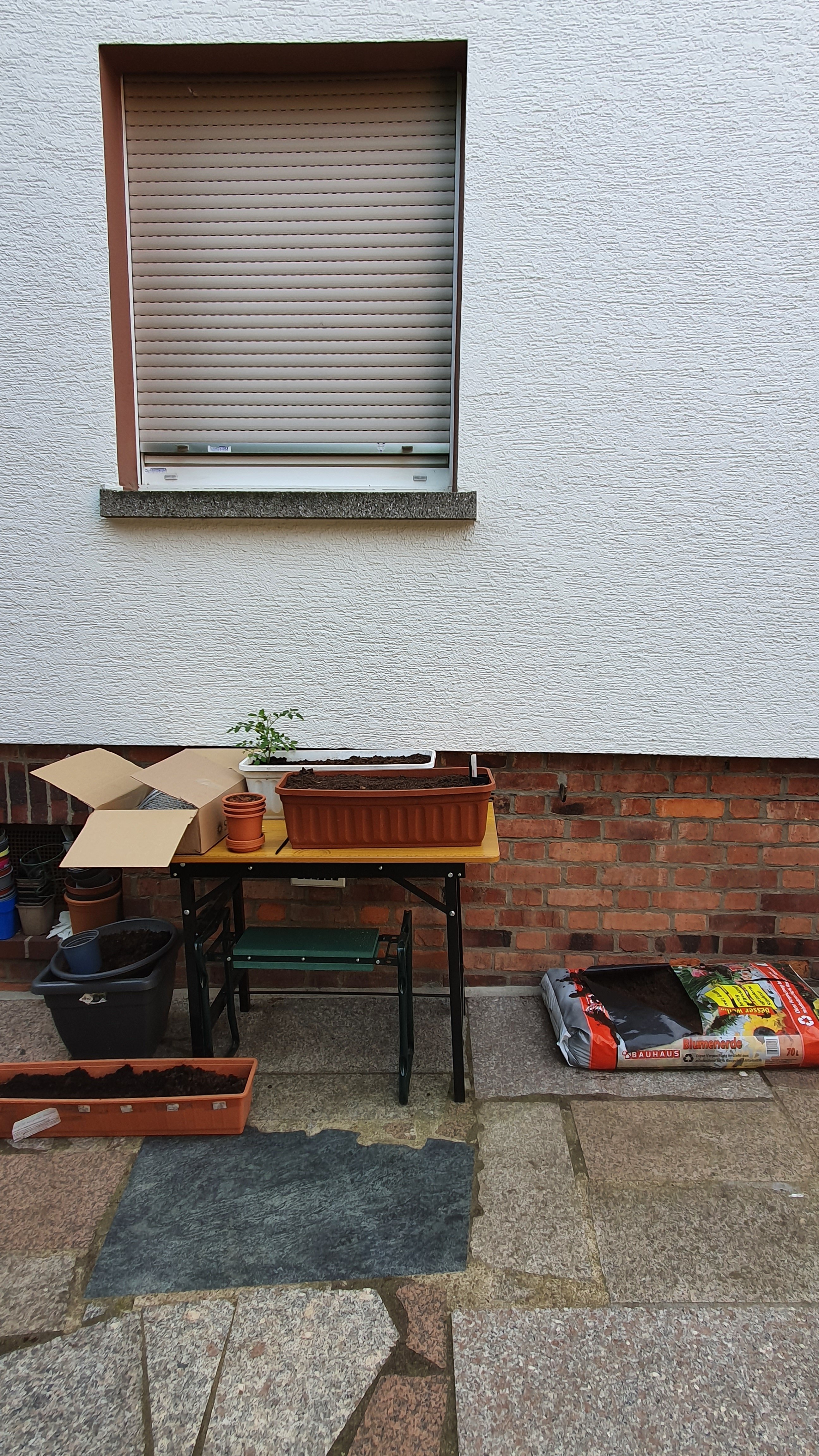 Zuhause räumte ich die Loggia auf und setzte dabei die Kräuter. Danach stellte ich sie an einen geschützten Platz.