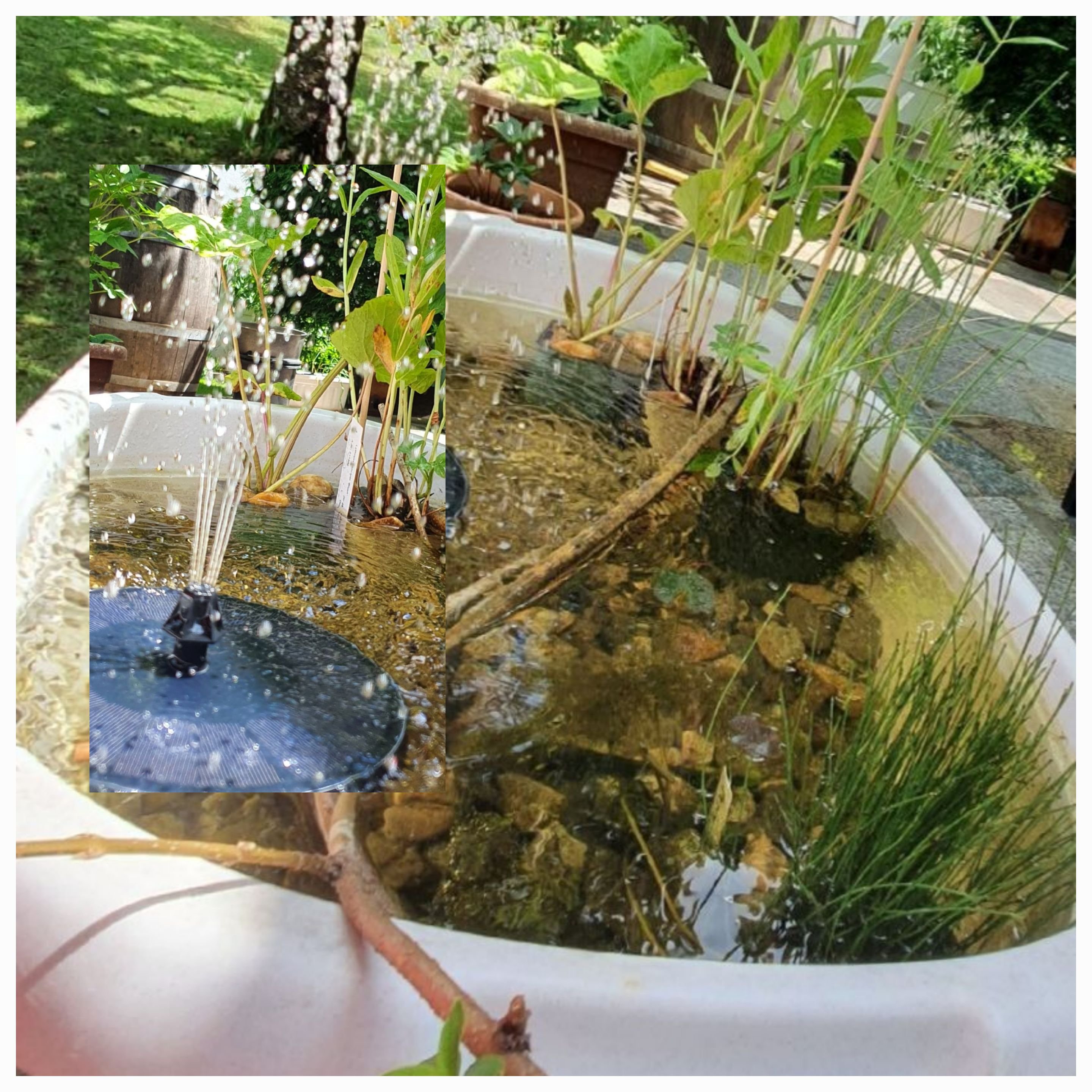 Nachdem sich das Wasser geklärt hat, installierte ich eine Solarpumpe, die bei Sonne für etwas Umwälzung sorgt.