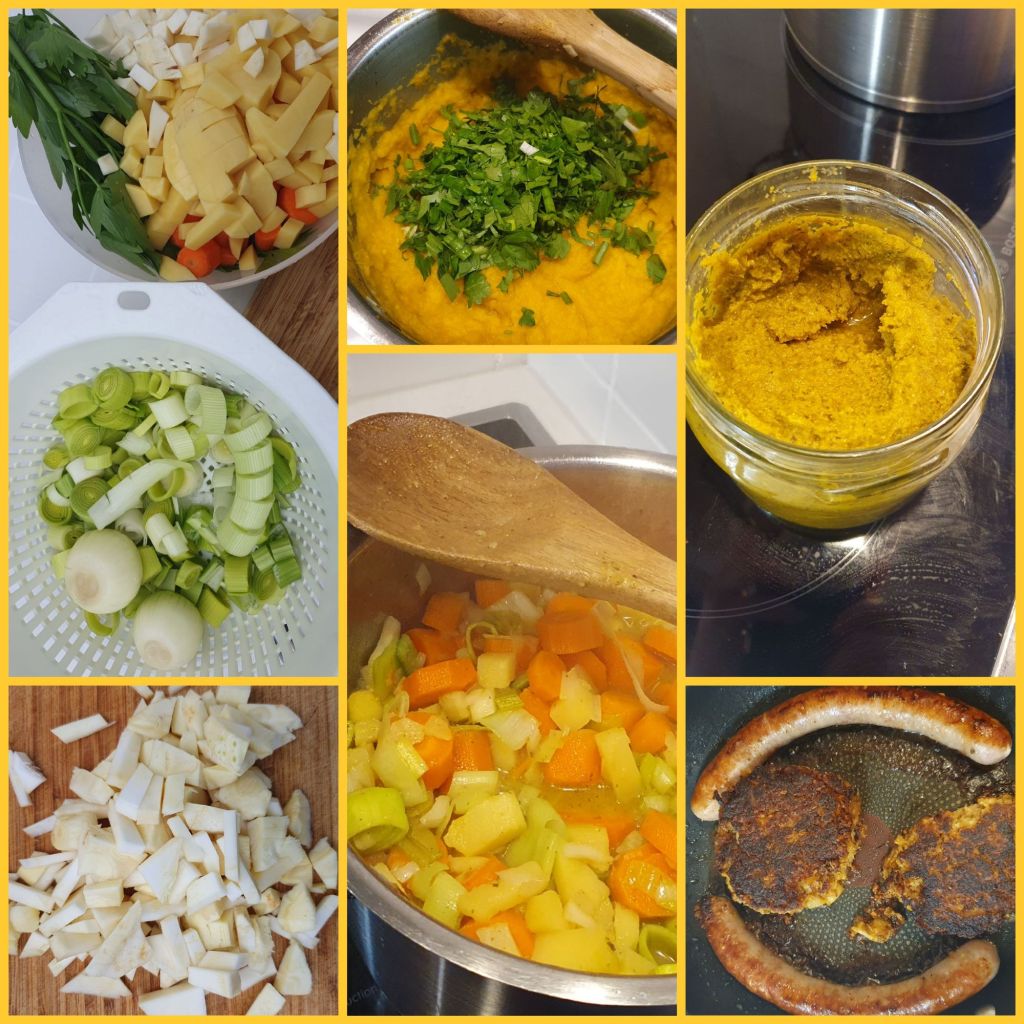 Im Frühjahr 2020 habe ich zwei neue Küchen bekommen: eine neue aus hellem Eichenholz im Haus und eine Sommerküche. Mein Mann hat dafür den Schuppen mit Fliesenresten, günstigen Bodenfliesen aus dem Bauhaus und Farben vorangegangener Renovierungen verschönert. Als Herd haben wir ein Campinggestell mit Gasanschluss konstruiert. Wasser und Strom waren eh schon im Schuppen, also wurden Durchlauferhitzer, Spülbecken, Armaturen und einen Kühlschrank erneuert und Teile der alten Holzküche drumherum gebaut.