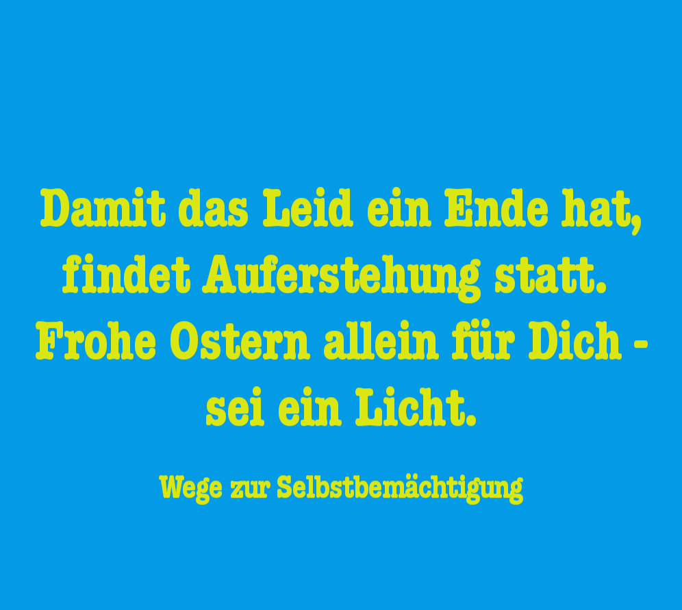 Mag man an Auferstehung oder Reinkarnation glauben oder nicht, Jesu Wirken zeigt den Weg aus dem Dilemma: Man kann immer wieder neu aus den alten Verstrickungen und Dramen heraustreten und ein liebevolles Leben führen. Jeder, der das für sich entdeckt und lebt, wirkt sich auf das gesamte Kollektiv aus. Jeder positive Gedanke, jedes freundliche Wort, jedes Verzeihen und jede Wertschätzung, macht die Welt heller. Wir sollten unsere Eigenwirkung für die Welt nicht unterschätzen. Ebenso wirken sich auch die vielen negativen Gefühle wie Neid, Hass und Gier auf das Weltgeschehen aus.