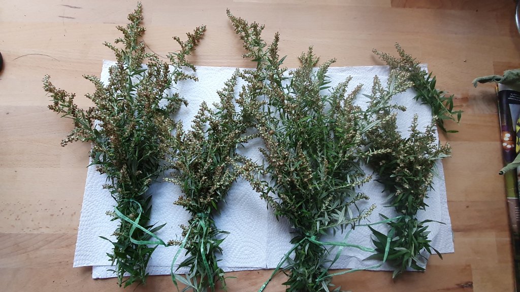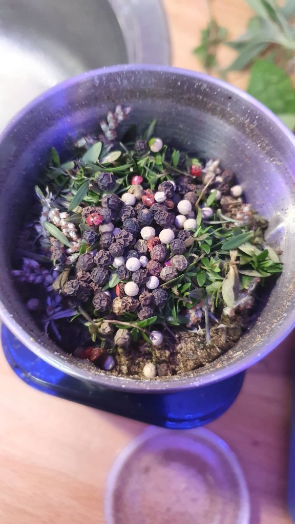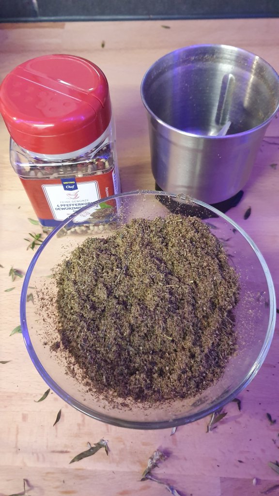 Ich werde nochmal einen Streifzug durch meinen Garten machen und nach Salbei, Melisse, Beifuß, Minze etc. Ausschau halten und diese dazuschichten.