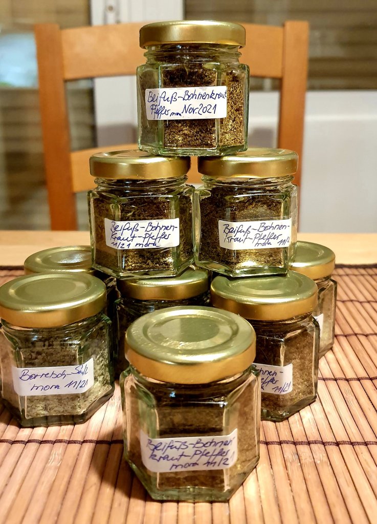 bakterienhemmend) - Bohnenkraut (verwandt mit dem Thymian – hilft bei Magen-Darm-Beschwerden, Husten, wirkt beruhigend)