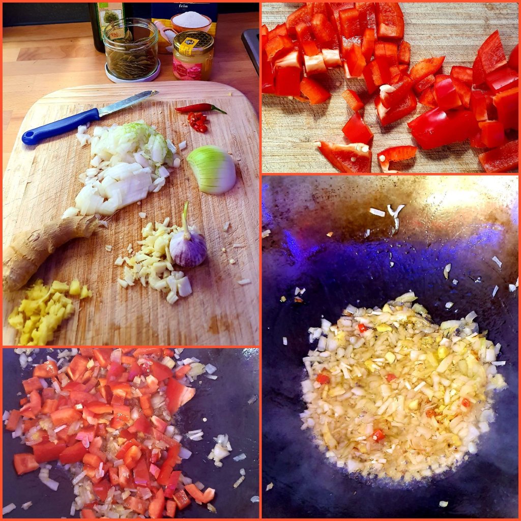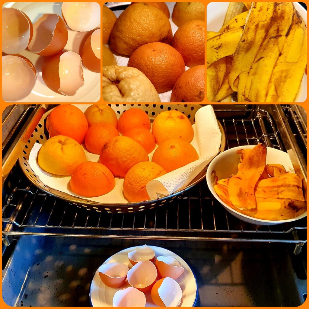 Am Wochenende wird Brot gebacken. Zunächst wird der Sauerteig vorbereitet. Und am nächsten Tag gebacken.Dann sehe ich die sehr reifen Bananen. Was hab‘ ich noch so alles im Vorratsschrank? Ok, ich backe ein Bananenbrot. Dabei kann ich auch die sau-bittere Schokolade verwursteln.Bananen- und Eierschalen sind gute Gartendünger. Deshalb werden sie getrocknet und anschließend im Hochbeet verteilt.Apropos Schalen … bei uns gibt es öfter frischen (Bio-) Orangensaft. Die Schalen kann man ebenfalls trockenen und weiterverarbeiten. Zum Beispiel kann man einen warmen Ölauszug machen. Das Orangenöl duftete herrlich, man könnte es zum Kochen oder im Salat verwenden, theoretisch. Ich verrate Euch nicht, dass mir der Glasboden im Wasserbad gekracht ist und ich die ganze Suppe entsorgen musste.Mit dem Schalenabrieb mixe ich einen Orangenzucker. Ich trockne ihn im Ofen und habe jetzt ein paar schöne Weihnachtsgeschenke. Da fällt mir ein: Wenn ich schon am Mixen bin und die Reibe auch im Gebrauch ist, stelle ich noch eben ein Salz mit Rosmarin und (Bio-) Zitronenabrieb her. Wieder ein paar Geschenke.Tomate frito: Zwiebeln, Knoblauch, Ingwer anbraten und mit einem Telöffel Honig karamelisieren. Paprika und Chillies mit anbraten, Tomaten und Lorbeerblätter dazugeben. Einkochen lassen, salzen. Alles durch ein Sieb (flotte Lotte) passieren. Weiterverwenden oder heiß ins Schraubglas füllen. Hält lange. Eigentlich hatte ich zwei Tage rumgewerkelt und keine Lust mehr … Die Tomaten waren wirklich überreif. Ok, da gibt es doch diese leckere spanische Tomatensoße ‚Tomate Frita‘. Dank Google fand ich ein passendes Rezept. Nachdem die Soße fertig war, verwandelte ich sie gleich in eine cremige Tomatensuppe. Ein kleines Gläschen der gebratenen Tomate konnte ich geradeso retten.