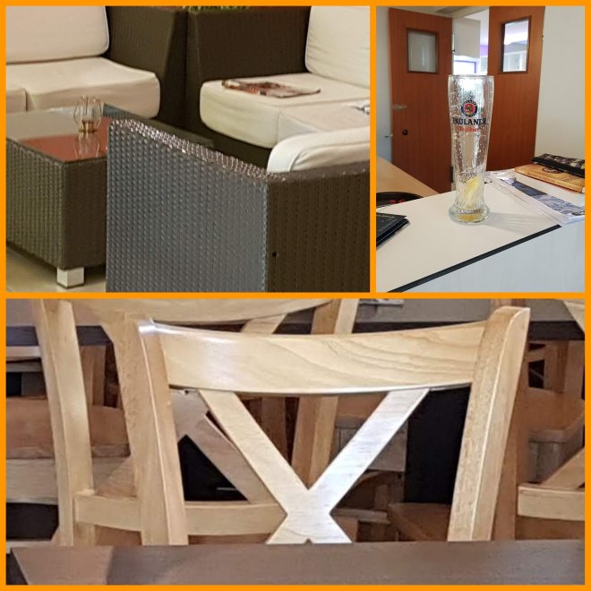 Im Bistro bei Pizzabrot und alkoholfreiem Weizenbier kommt es oft zu netten Gesprächen mit anderen Saunagästen.
