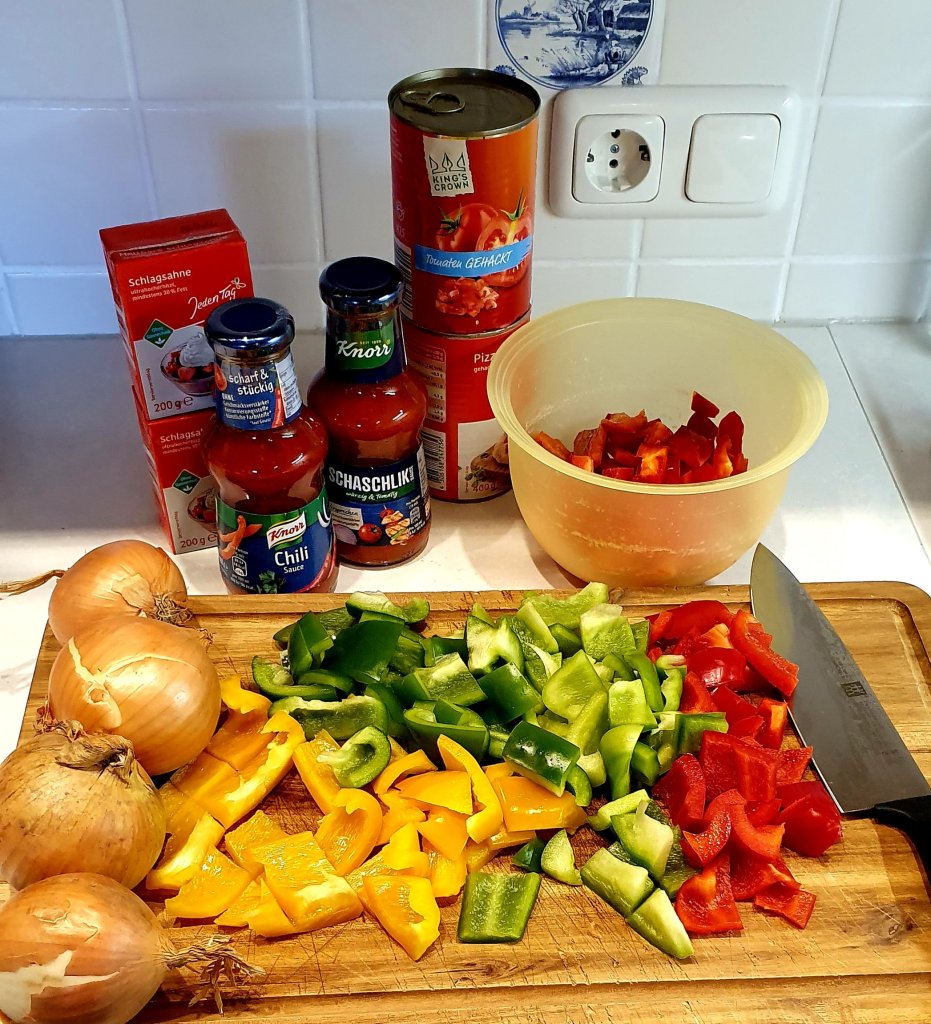 Ich habe lange überlegt, ob ich hier ein Fleischgericht posten soll. Ich esse sehr gerne Fleisch, also sollte ich mich auch dazu „bekennen“. Meist kaufe ich beim Metzger meines Vertrauens und versuche, weniger davon zu essen. Heute kommt Besuch, daher wollte ich viel Zeit für meine Gäste haben. Derweil schmurgelt das Gericht im Ofen vor sich hin und ich brauche mich nur um die Zutaten, Brot und Nudeln, kümmern. Den Salat bringt meine Schwester mit, das Brot kurzfristig auch. Ostern haben die Bäckereien geschlossen. Das ist mir doch glatt entgangen.😇