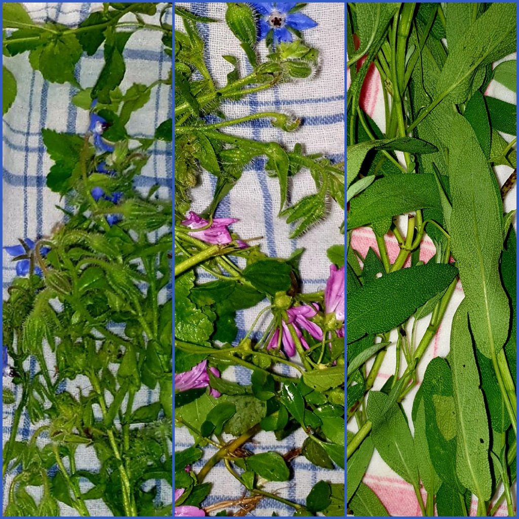 Borretsch, Malven, Verbenenkraut, SalbeiVom Ofen ins Glas: Brennnesselsamen, Hopfen, Salbei, Johanniskraut. Im Kräuterschrank muss ich bald anbauen.
