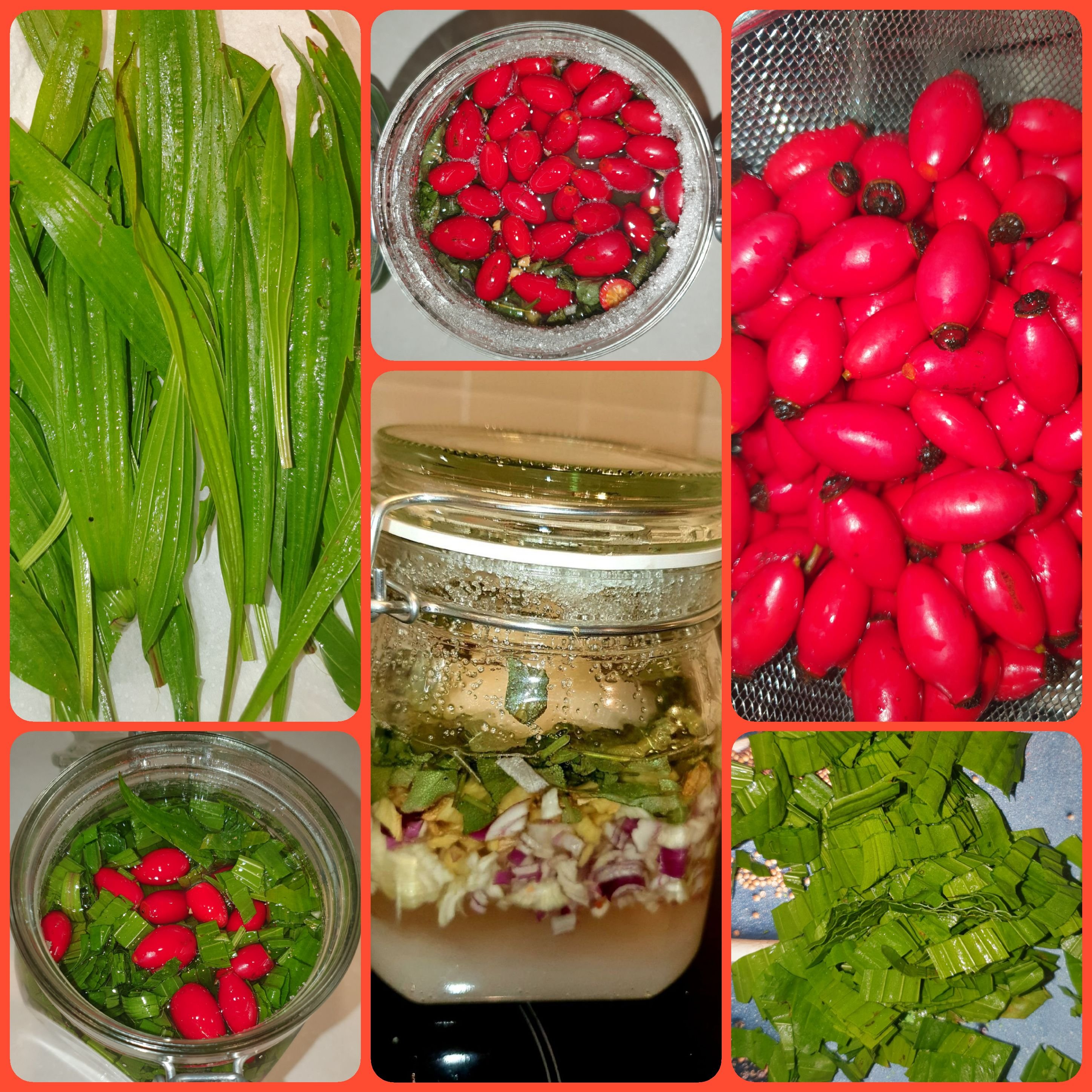 Bei meinem letzten Spaziergang wurden mir noch einige späte Naturschätze vor die Füße gelegt. Die Kräuter wurden gesammelt, gewaschen und kleingeschnitten. (Den Storchschnabel, eine Geranienart, trockne ich für Tee.) Als Essig verwendete ich den dunkleren Branntweinessig. Weißer Essig ist wahrscheinlich dekorativer, den hatte ich aber nicht im Vorrat.