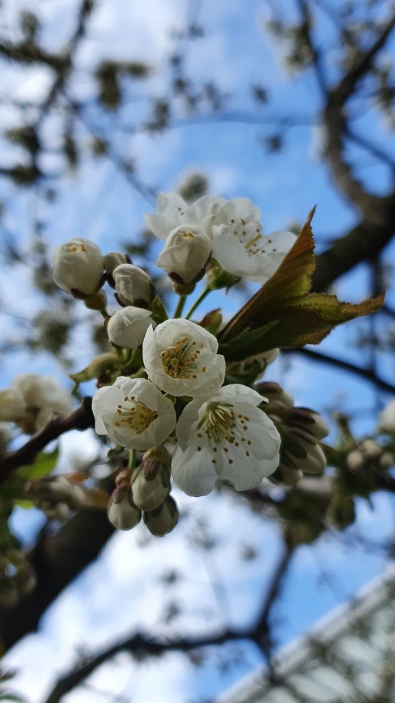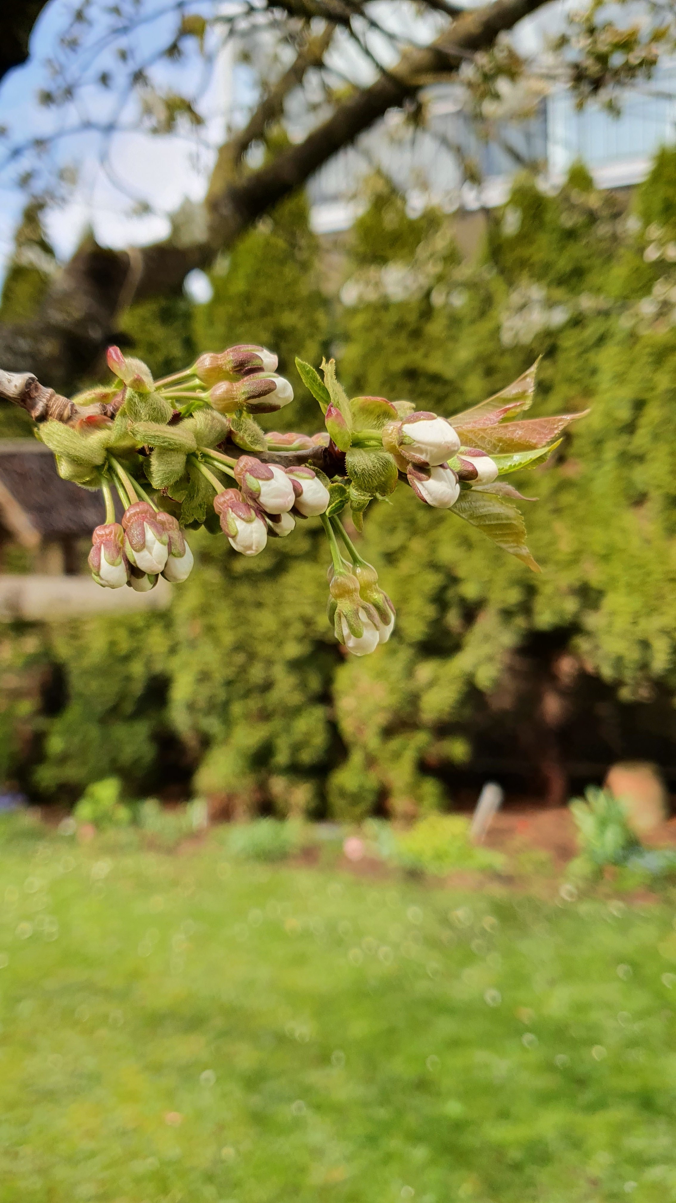 Süßkirsche – es ist draußen zwar noch etwas frisch, aber das stört die Bienen nicht. Es summt und brummt im Baum und es duftet wunderbar. Das ist eine Wohltat für meine Seele.Noch schnell ein paar Knospen pflücken, bevor alle erblüht sind. Eigentlich müssten sie für meine Zwecke noch etwas verschlossener sein. Ich wage es trotzdem. In den Knospen steckt jegliche Information im embryonalen Zellgewebe. D.h. wenn man die Knospen verwendet, wird die Heilkraft vom gesamten Baum genutzt: von der Rinde, den Blättern und Stielen, der Früchte und Kerne. Für ein Gemmomazerat benötigt man nur eine kleine Menge an Knospen.Die Wirkung der Kirsche ist entgiftend, entzündungshemmend, schlaffördernd. Sie ist reich an Vitamin C, Kalium und Folsäure. Sie kann bei Schlafstörungen, Rheuma, Erkältungen, Bluthochdrock, Gicht, Demenz helfen. Blätter, Stängel und Rinde wirken stärker als die Früchte. Schönes Färbchen, nach ca. zwei Stunden.Meine anderen Gemmo-Präparate: Süßkirsch-Tinktur (Ethanol), Schwarzpappel-Salbe (Sonnenblumenöl + Bienenwachs), Apfel-Tinktur (Wodka), Fichten-/Lärchen-Oxymel (Apfelessig + Honig), Haselnuss- Gemmospray (Wodka + Glycerin), Haarwasser (Douglasie + Holunder + Wodka + Wasser + Mandelöl + äth. Rosmarinöl), Schwarzpappel (Wodka).