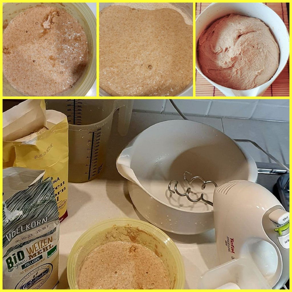 Das Anstellgut blubberte an der warmen Heizung ziemlich schnell ziemlich stark d.h. der Teig musste bereitet werden.
