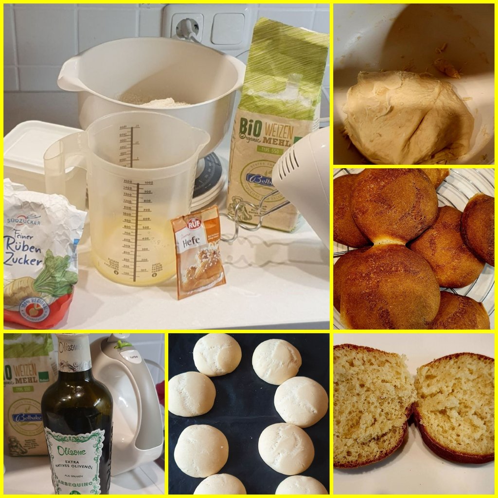 Es war Samstag und ich wollte mich eigentlich ausruhen. Gut, das Brot für die Woche sollte schon vorbereitet werden. Daher rührte ich mal eben den Ansatz an und stellte ihn in Heizungsnähe. Dann plazierte ich mich selbst neben die Heizung (und dem Anstellgut), um ein bisschen zu schreiben. Dabei sinnierte ich übers Frühstück. Da ich noch das Nachthemd anhatte und es draußen trüb war, suchte ich mir ein schnelles Rezept im Netz heraus. So musste ich mich von meinem warmen Plätzchen erheben und loslegen. Geht ja schnell, dachte ich. Aber irgendwie kam eins zum anderen und ich war fast den ganzen Tag auf den Beinen.