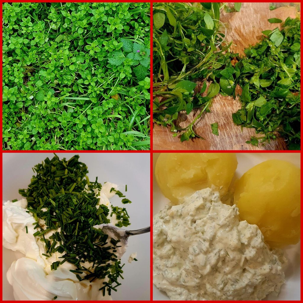 Vogelmiere (Stellaria media) Teppichartig breitet sie sich auf stickstoffhaltigen Böden aus und schützt dabei als lebende Mulchschicht vor Bodenerosionen. Selbst bei Minustemperaturen wächst sie weiter, auch unter Schneedecken. Anstatt sie als Unkraut zu bekämpfen, sollte man sie lieber aufessen und als Heilpflanze nutzen. Sie ist vitamin- und mineralstoffreich, enthält Saponine und Flavonoide. Geschmacklich hat sie eine feine nussige Note, ich finde sie äußerst lecker. Als Tee, Salbe oder Breiumschlag wirkt sie positiv bei Haut- und Stoffwechselerkrankungen (Gicht und Rheuma) und Entzündungen. Und sie findet in der Küche eine vielfältige Verwendung in Kräuterbutter, Suppen Quarkspeisen und Salaten.