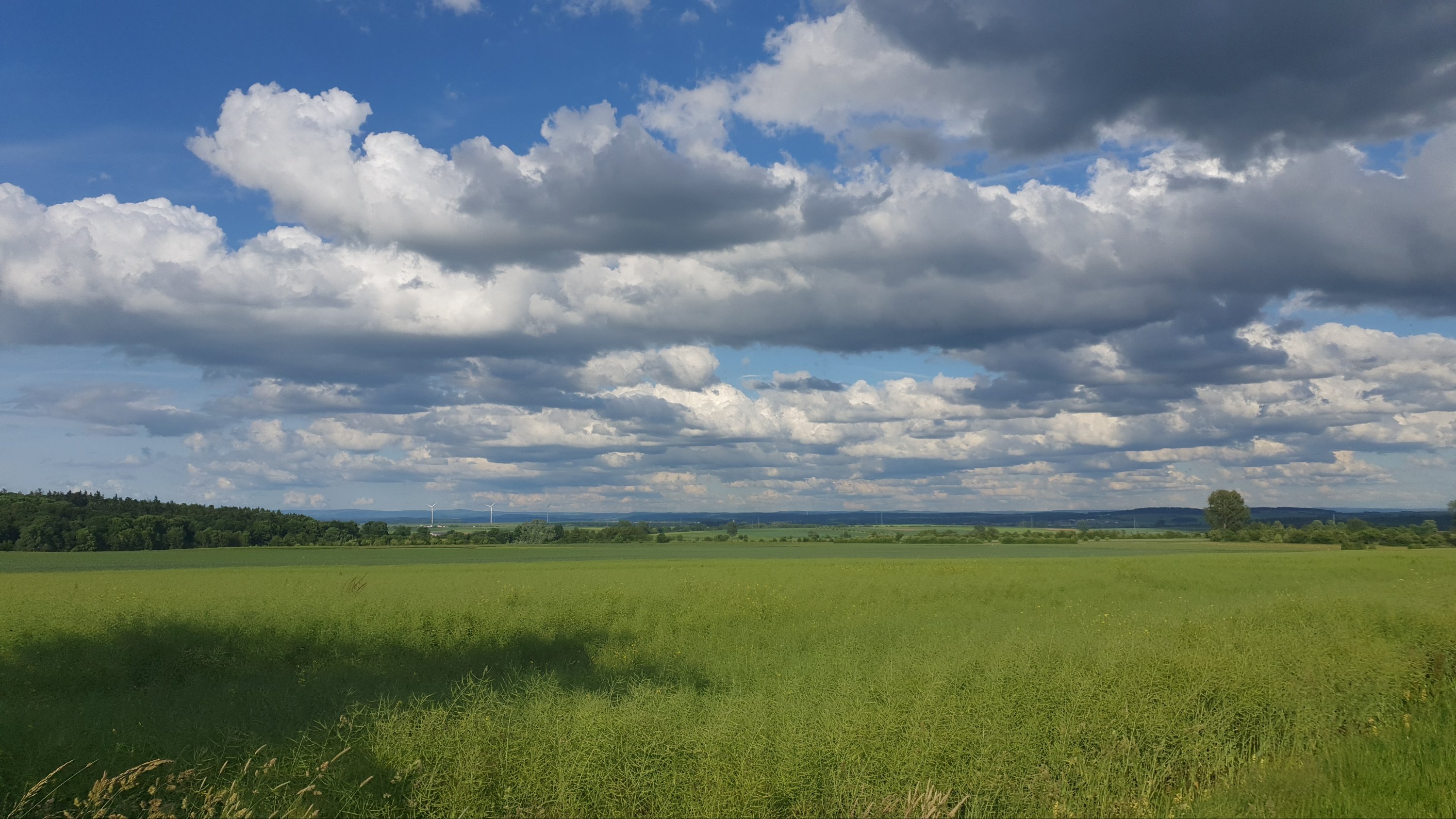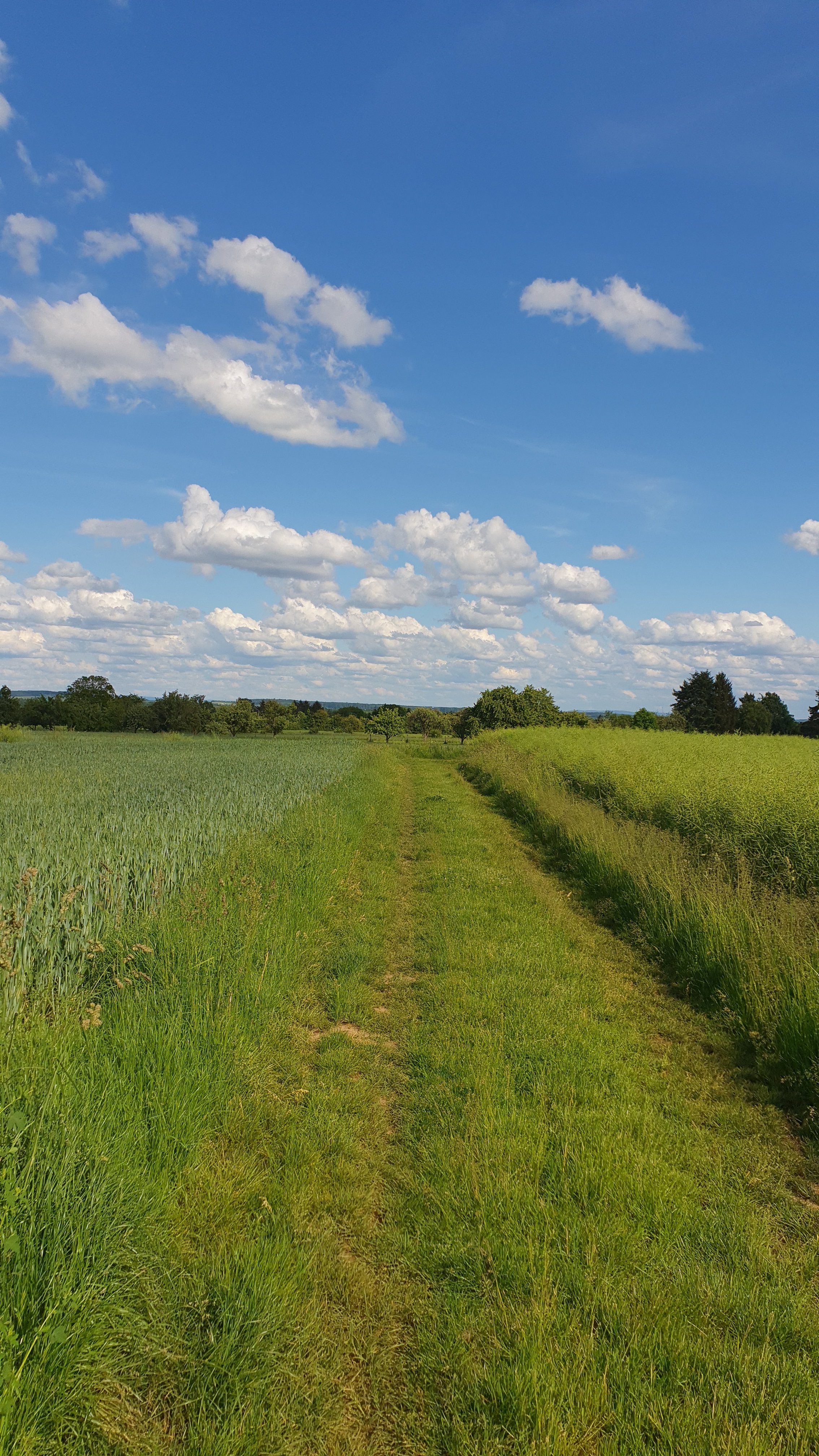 Es wurde Zeit für einen ausgedehnten Spaziergang mit meiner Freundin und unserem Lieblingshund. Diesmal ging es zum Alten Berg, dem kleinen Waldstück zwischen Nieder Wöllstadt und Petterweil. Wir starteten in Rodheim bei der Feuerwehr und hielten uns links parallel zur Landstraße nach Wöllstadt. Vorbei an einem Bauernhof, an Gärten, furchterregenden Wachhunden, neugierigen Ziegen und fruchtbaren Feldern, gelangten wir schließlich an unser Ziel. Während des Laufens unterhielten wir uns angeregt und bewunderten die üppige Natur. Wir sahen ein großes Rudel Rehe über die Felder flitzen, Gänse, Hasen und einen Gabelweiher. Und in den Feldern zwitscherten die Lerchen. Es war erhebend. Nach dem Spaziergang war das Engegefühl, was ich in letzter Zeit öfter im Brustbereich habe, verschwunden. Ich fühlte mich locker und frei.